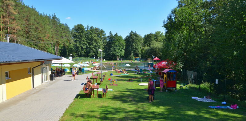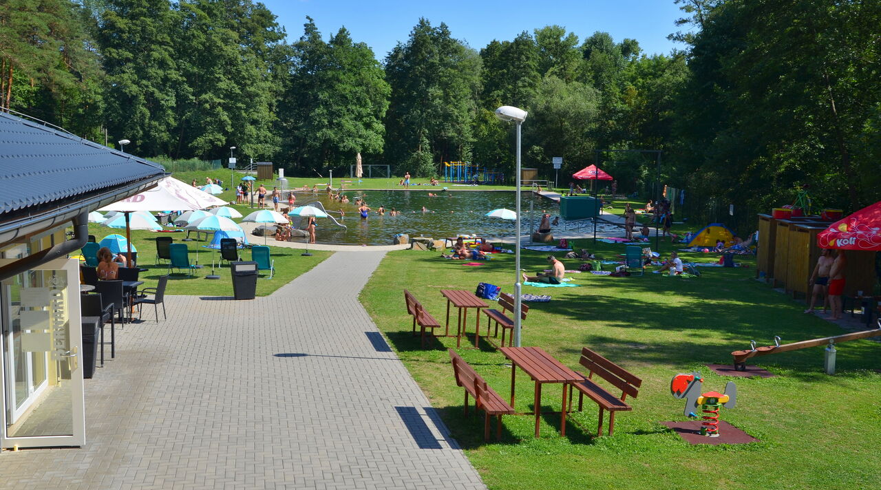 Na našem koupališti naleznete velký bazén (celková vodní plocha 1 185 m2), dětské hřiště, workoutové hřiště, závěsný kuželník a občerstvení s venkovním posezením.